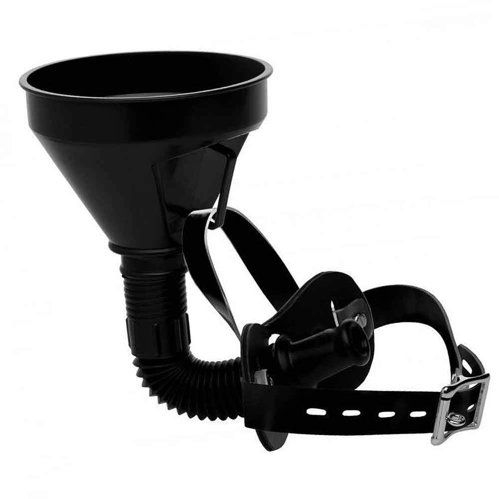 Dieser innovative und ungewöhnliche Trichter Piss-Knebel passt perfekt um den Kopf Deines Sub's, das universell verstellt und befestigt werden kann, sodass er Deiner kostbaren Füllung nicht entfliehen kann.