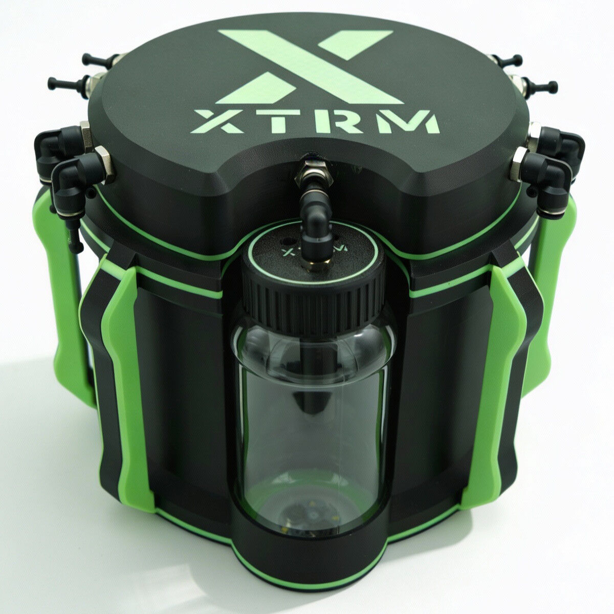 Visuell ist die Big Bang Station eine Klasse für sich: Das spacige Gehäuse leuchtet in einem Glow‑in‑the‑Dark‑Finish, das in dunklen Räumen sofort ins Auge springt und im Kopf bleibt. Dazu kommt das eigentliche Highlight: Eine integrierte LED-Leiste unterhalb des Haupttanks bringt Licht an den Punkt, wo’s darauf ankommt. Du siehst jederzeit, was abgeht, selbst bei minimalem Raumlicht oder kompletter Dunkelheit.