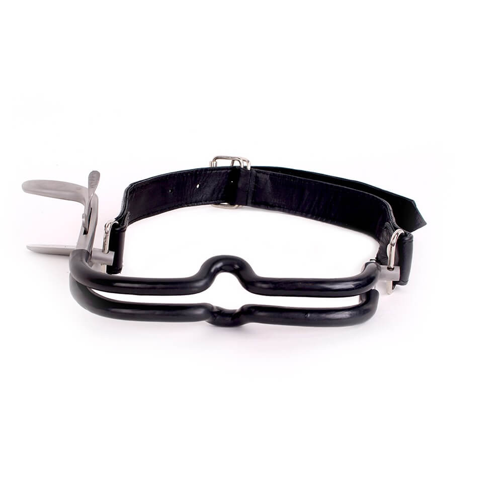 Der Knebel wird zwischen den oberen und den unteren Zähnen angebracht und sorgt für eine maximale Öffnung von bis zu 4,5 cm. Die Länge des Riemens ist verstellbar von 35 bis 45 cm.