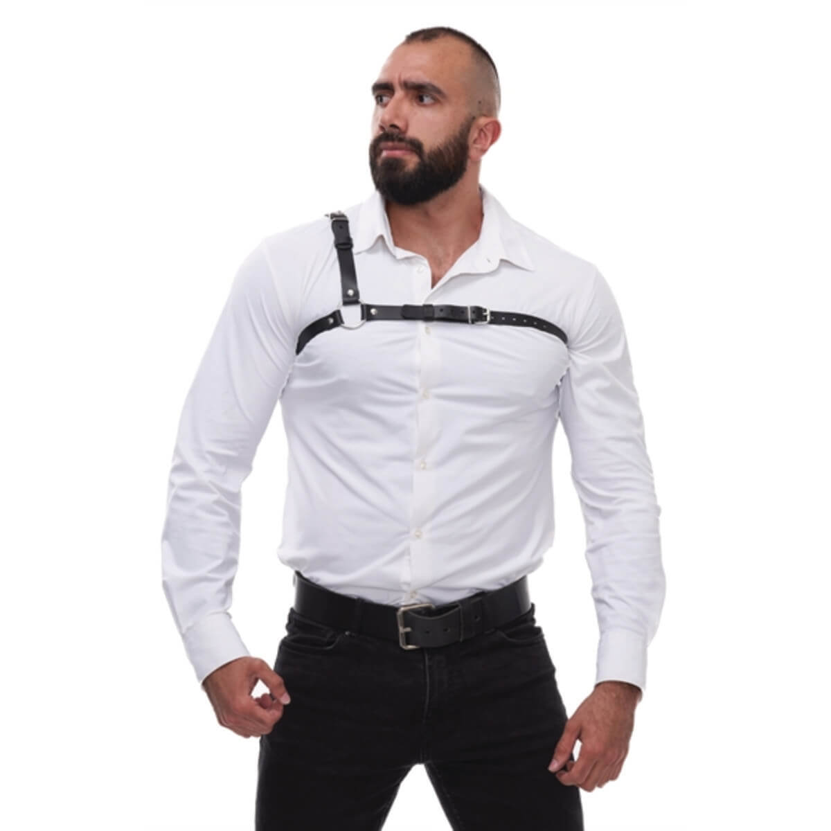 This country needs new harnesses! The style harness from Mister B not only looks extraordinarily sexy, but also makes a great fashion statement with its minimalist and asymmetrical design! It doesn't matter if you're naked or with an elegant shirt underneath - you'll always cut a stunning figure with this harness!