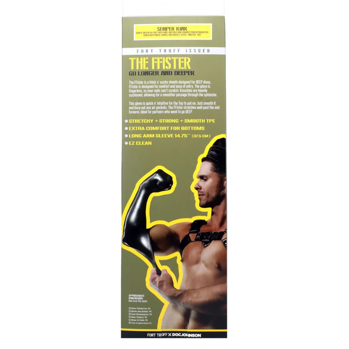 Zusammen mit echten Fisting-Experten hat Fort Troff einen Handschuh entwickelt, der dich schnell, sicher und vor allem tief eindringen lässt! Gefertigt aus dick gepolstertem TPE, sorgt der Handschuh für ein mega bequemes Erlebnis für den Bottom. Keine Sorge mehr wegen Fingernägeln oder Knöcheln – mit dem FFister gleitet alles geschmeidig und mühelos. Der Handschuh ist blitzschnell angezogen: einfach glattstreichen und alle Luftblasen rausdrücken. Er reicht bis über den halben Unterarm und sorgt so für ein nahtloses und gepolstertes Fisting Erlebnis.