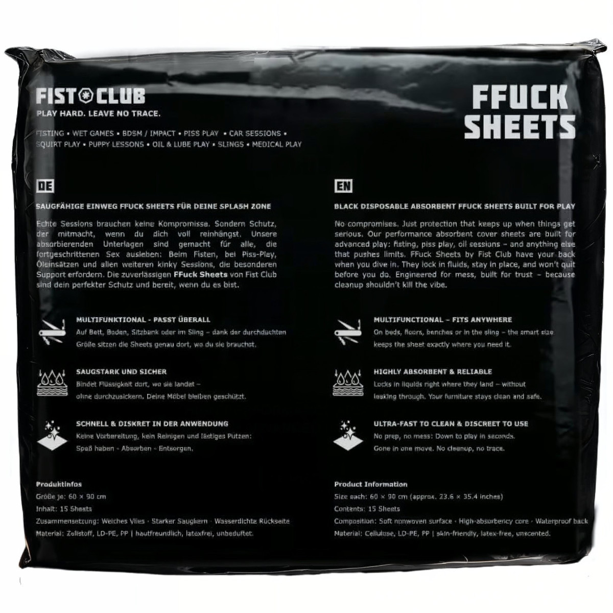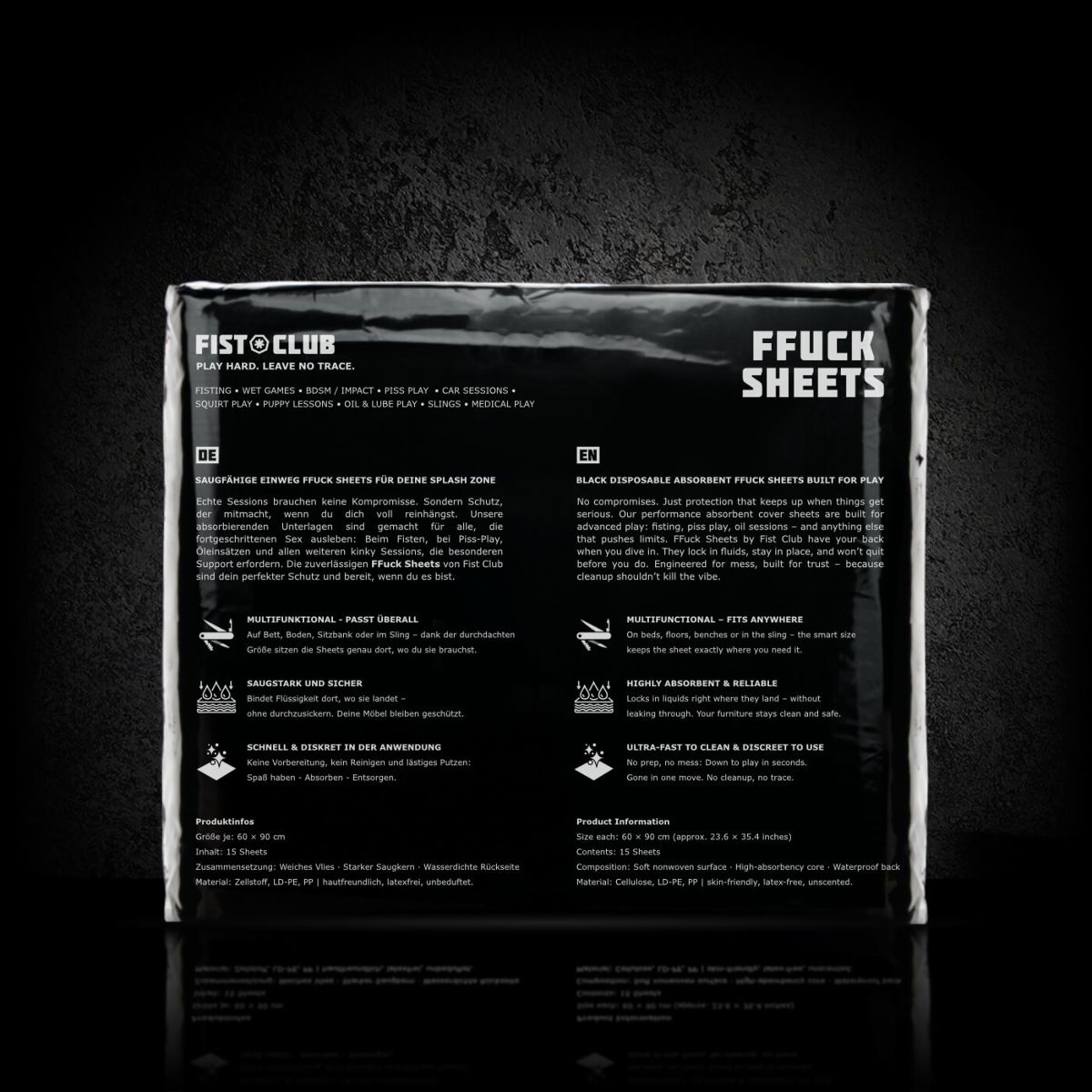Echte Sessions brauchen keine Kompromisse. Sondern Schutz, der mitmacht, wenn du dich voll reinhängst. Unsere absorbierenden Unterlagen sind gemacht für alle, die fortgeschrittenen Sex ausleben: Beim Fisten, bei Piss Play, Öl-Einsätzen und allen weiteren kinky Sessions, die besonderen Support erfordern. Die zuverlässigen FFuck Sheets von Fist Club sind dein perfekter Schutz und bereit, wenn du es bist.