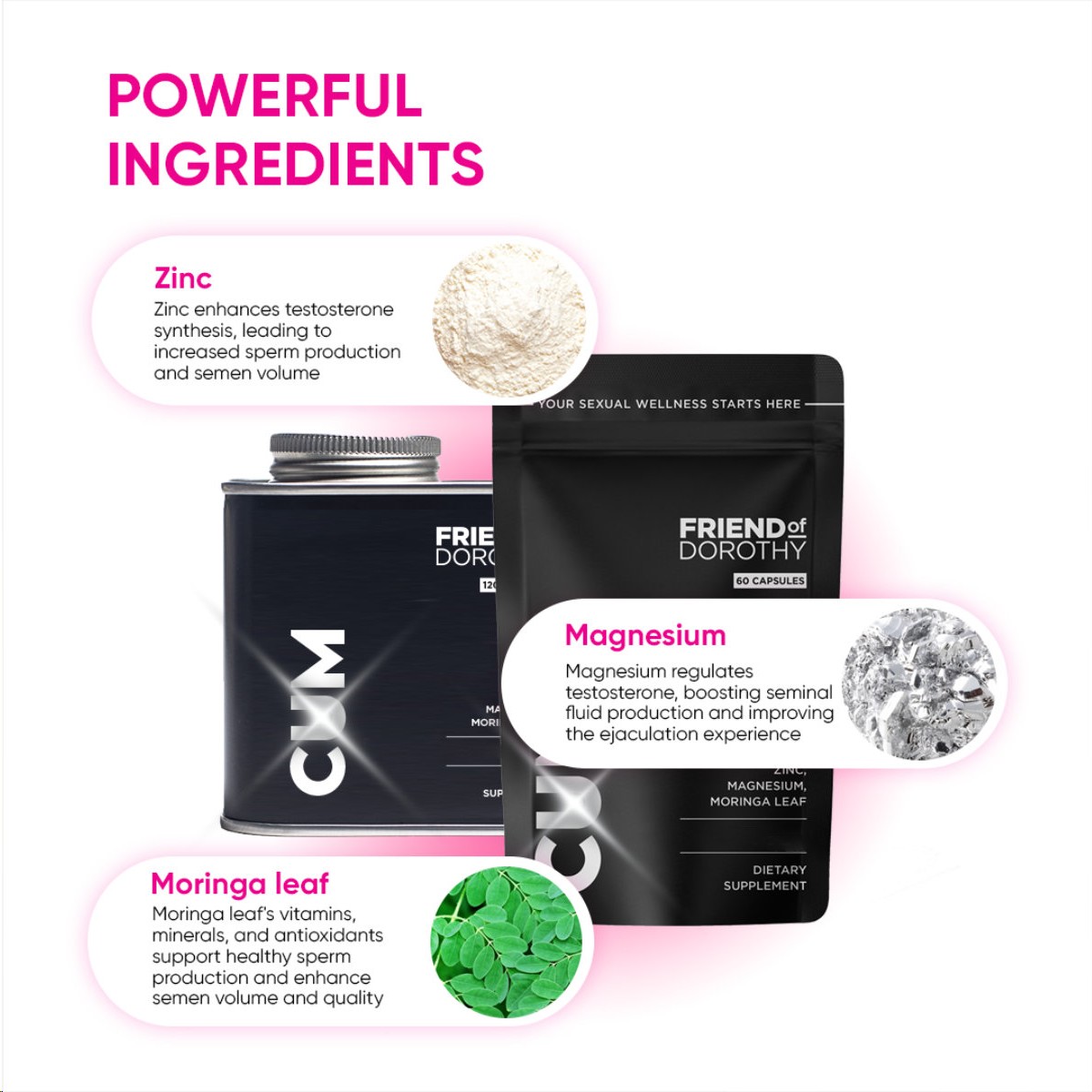 CUM ist dein täglicher Power-Boost für mehr Ladung, intensivere Orgasmen und den ultimativen „fuck yes“-Moment beim Abspritzen. Die starke Kombi aus Zink, Magnesium und Moringa bringt deine Prostata auf Hochtouren, kurbelt die Spermienproduktion an und macht aus jedem Schuss eine echte Show.