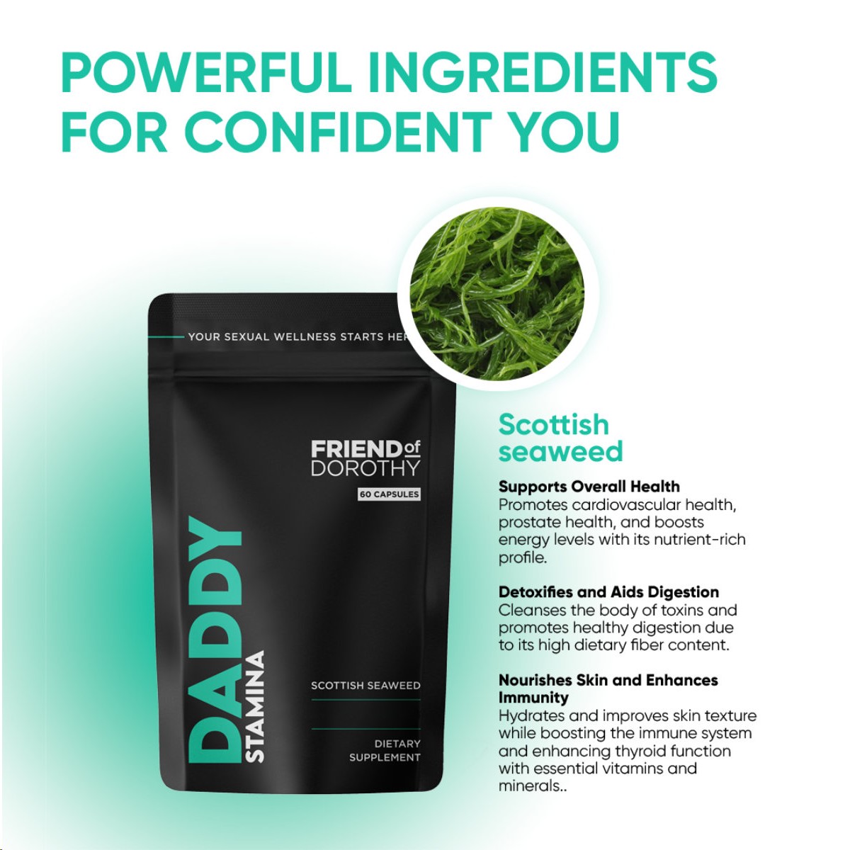 Die Kapseln sind vollgepackt mit den Superkräften von Meeresalgen – ein echtes Wundermittel der Natur. Sie pusht dein Herz, schützt deine Prostata, entgiftet deinen Körper, sorgt für bessere Haut, stabilisiert deine Verdauung und gibt deinem Hormonhaushalt den nötigen Kick. Klingt viel? Ist es auch. Aber genau das macht den Unterschied zwischen müde und Daddy-Modus. Einfach täglich zwei Kapseln vor einer Mahlzeit.