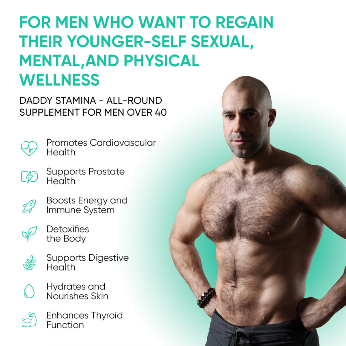 Mit Daddy Stamina holst du dir Power und Ausdauer schnell & zuversichtlich –und zwar körperlich, geistig und sexuell. Dieses natürliche Anti-Aging-Supplement wurde speziell für Männer entwickelt, die sich nicht mit "alt werden" zufriedengeben, sondern zeigen wollen zu welchen Bullen sie werden können. Du verdienst es, dich jeden Tag wie ein hungriger Daddy zu fühlen – mit voller Ladung an Energie, geiler Libido und einem klaren Kopf.