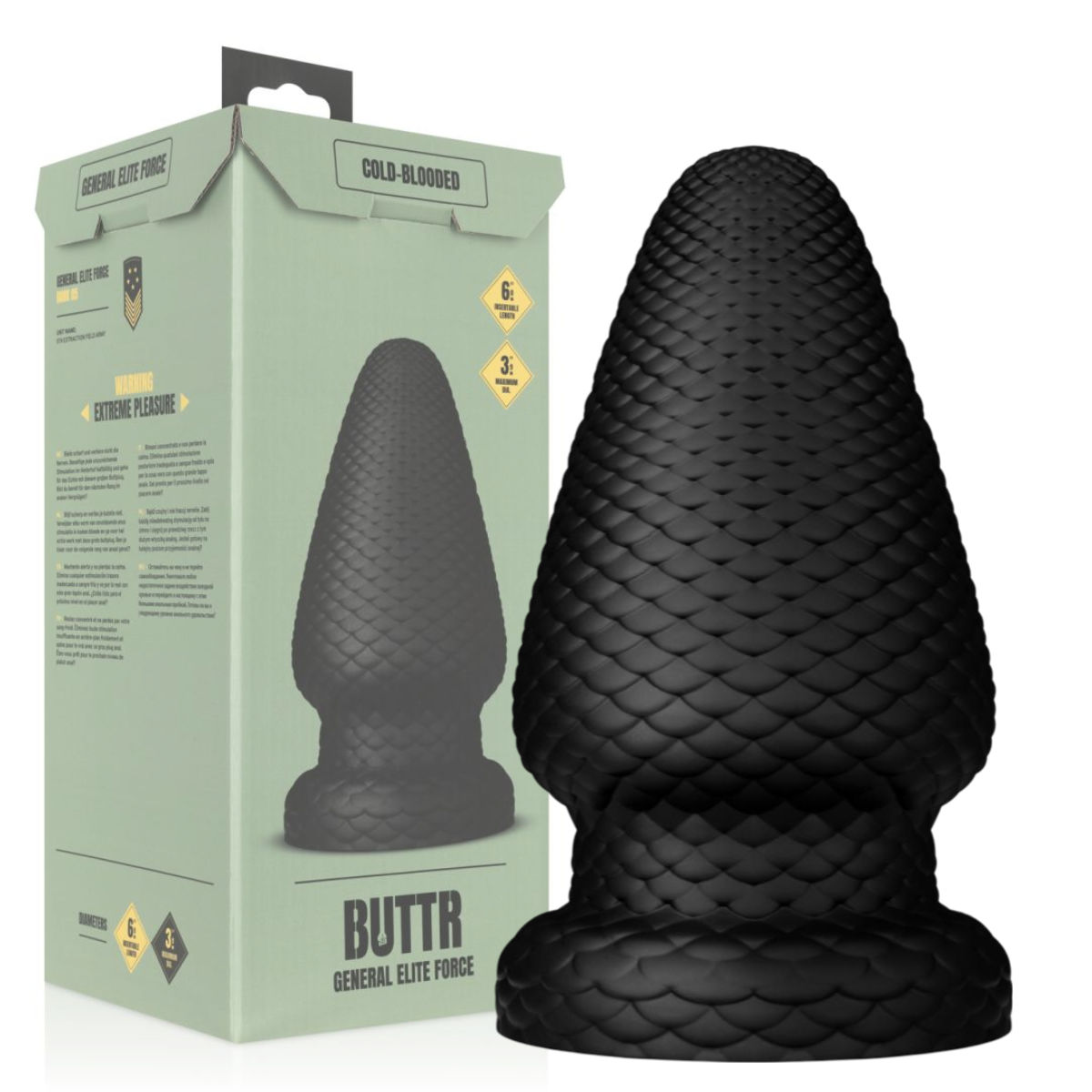 Mit seiner schuppigen Schlangenstruktur sieht dieser XXL-Plug nicht nur verdammt heiß aus, sondern bringt dich auch ordentlich zum Schwitzen. Der Name ist Programm: Eiskalt und erbarmungslos schiebt sich dieses Biest tief in dich und lässt dich jede einzelne Schuppe spüren, während du dich Stück für Stück an die beeindruckenden 15,2 cm Einführlänge und den knackigen Durchmesser von 9,9 cm heranwagst.