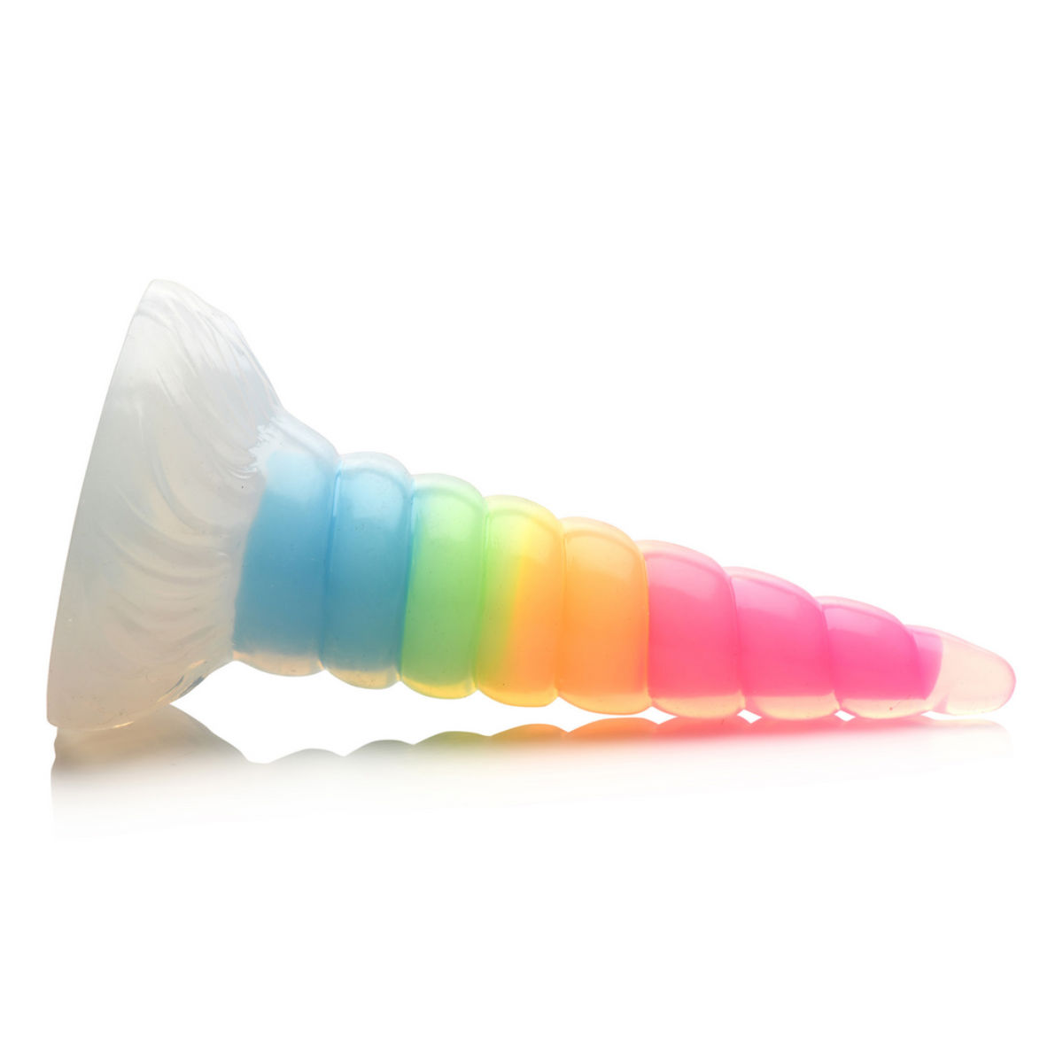 Für ein erleuchtendes Erlebnis! Nicht nur im Tageslicht ist der UniGlow mit seinen Regenbogenfarben ein wahrer Hingucker, sondern auch wenn das Licht ausgeht: Dann leuchtet er geil im Dunkeln, sodass er garantiert jedes Loch findet! Der ausgefallene Dildo hat eine gedrehte Struktur, die für...