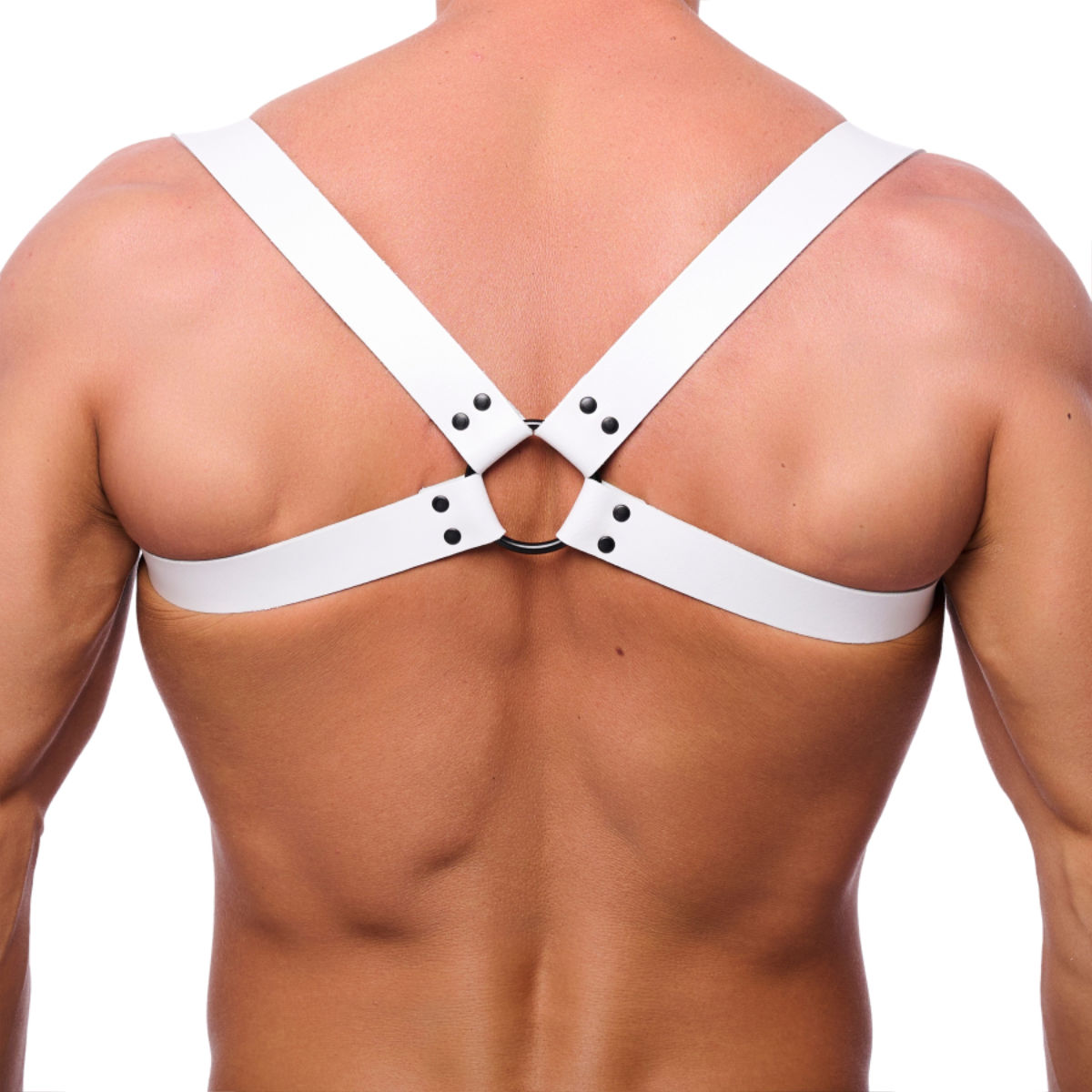 Auch ein schöner Rücken kann entzücken! Das beweist der Shoulder Harness, der dein sexy Kreuz besonders gut in Szene setzen wird. Die Vorderseite mit den 2 Riemen aus Leder wirkt schlicht, während diese hinten durch einen großen O-Ring verbunden sind und den weißen Harness zu einer echten Augenweide machen! Durch Schnallen lässt sich die Größe individuell einstellen, sodass jeder heiße Body noch heißer wird!