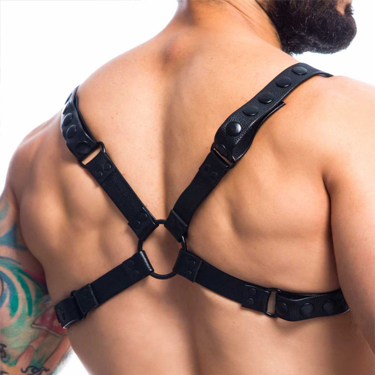 Dieses geile Teil legt sich eng um deinen Körper und hebt deinen heißen Body hervor. Aus 100 % Polyurethan gefertigt, bietet er nicht nur Stärke, sondern auch die Flexibilität. Die Schultergurte schmiegen sich perfekt an deine Brust und zeigen alles, was du hast. Die Brustgurte sind mit jeweils zwei Metallringen bestückt, die sich super für weiteres Spielzeug eignen. Hinten laufen die Gurte zusammen und lassen Brust und Rücken in voller Pracht zur Geltung kommen.