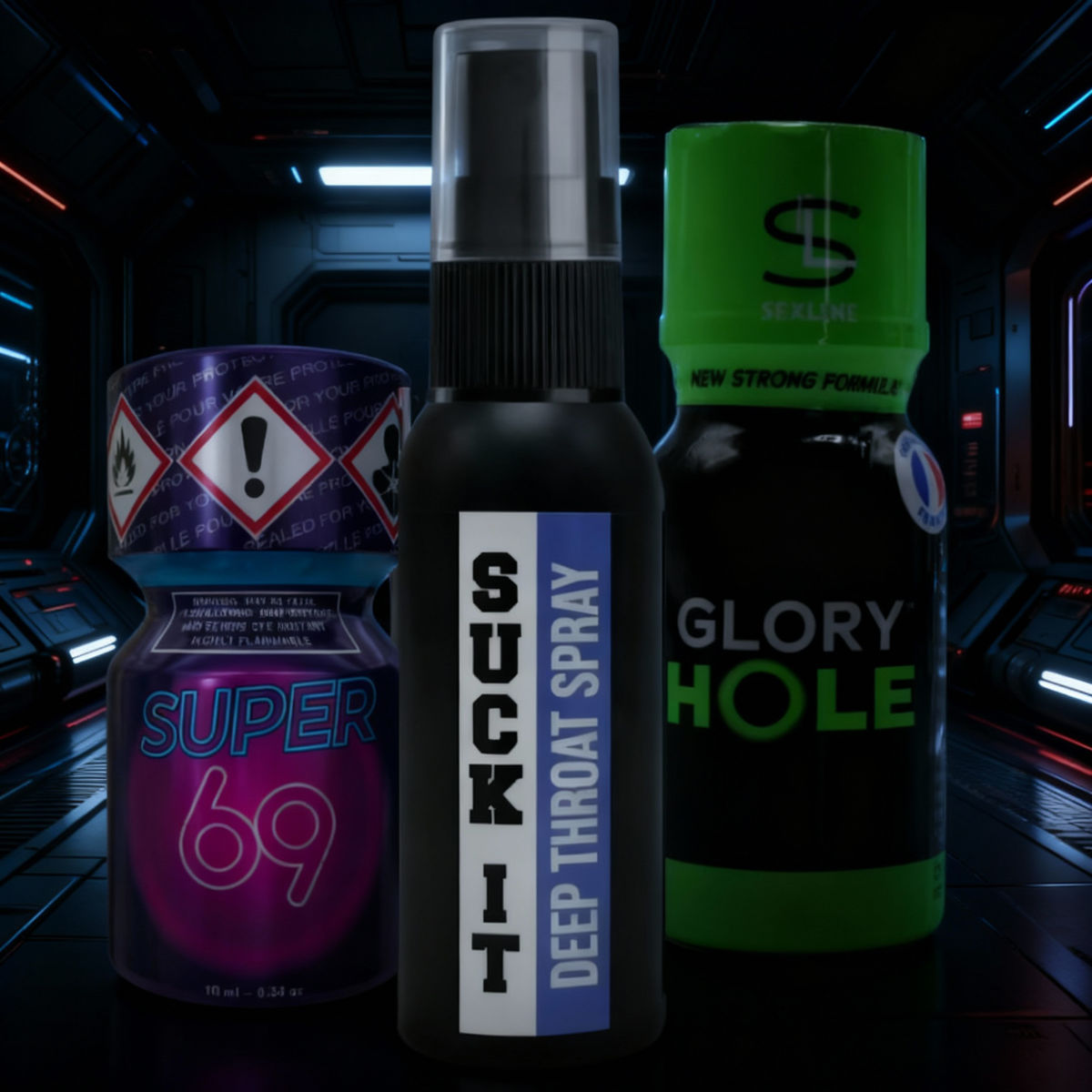 Glory Hole und Super 69 sind beliebte Poppers für geile orale Momente und mit unserem Klassiker, dem Suck It Deepthroat Spray, kannst du dich unbeschwert austoben und zeigen, was man so alles in dich reinstecken kann! ;)