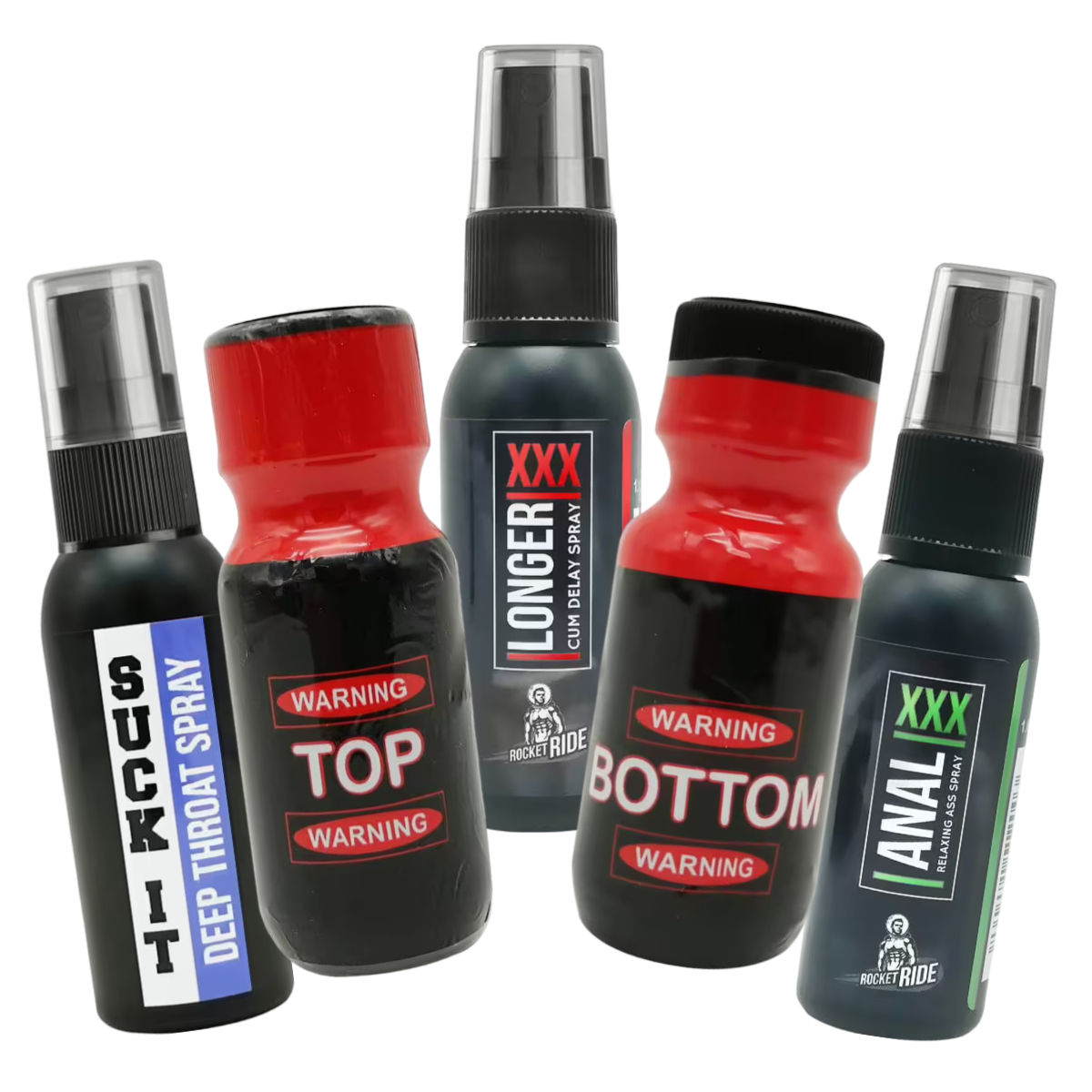 Mit den beiden Top & Bottom Poppers, kannst du dich nach Lust und Laune austoben und selbst bestimmen, wonach dir gerade ist. Unsere praktischen Sprays werden dir zu Oraler und Analer Entspannung helfen, damit all deine Löcher bereit sind für sein hammerhartes Teil. Mit dem Relax Delay Spray kannst du dir zudem selbst den Vorteil beim Rumficken verpassen und deinem Kerl zeigen, was deine Ausdauer so alles hergibt!