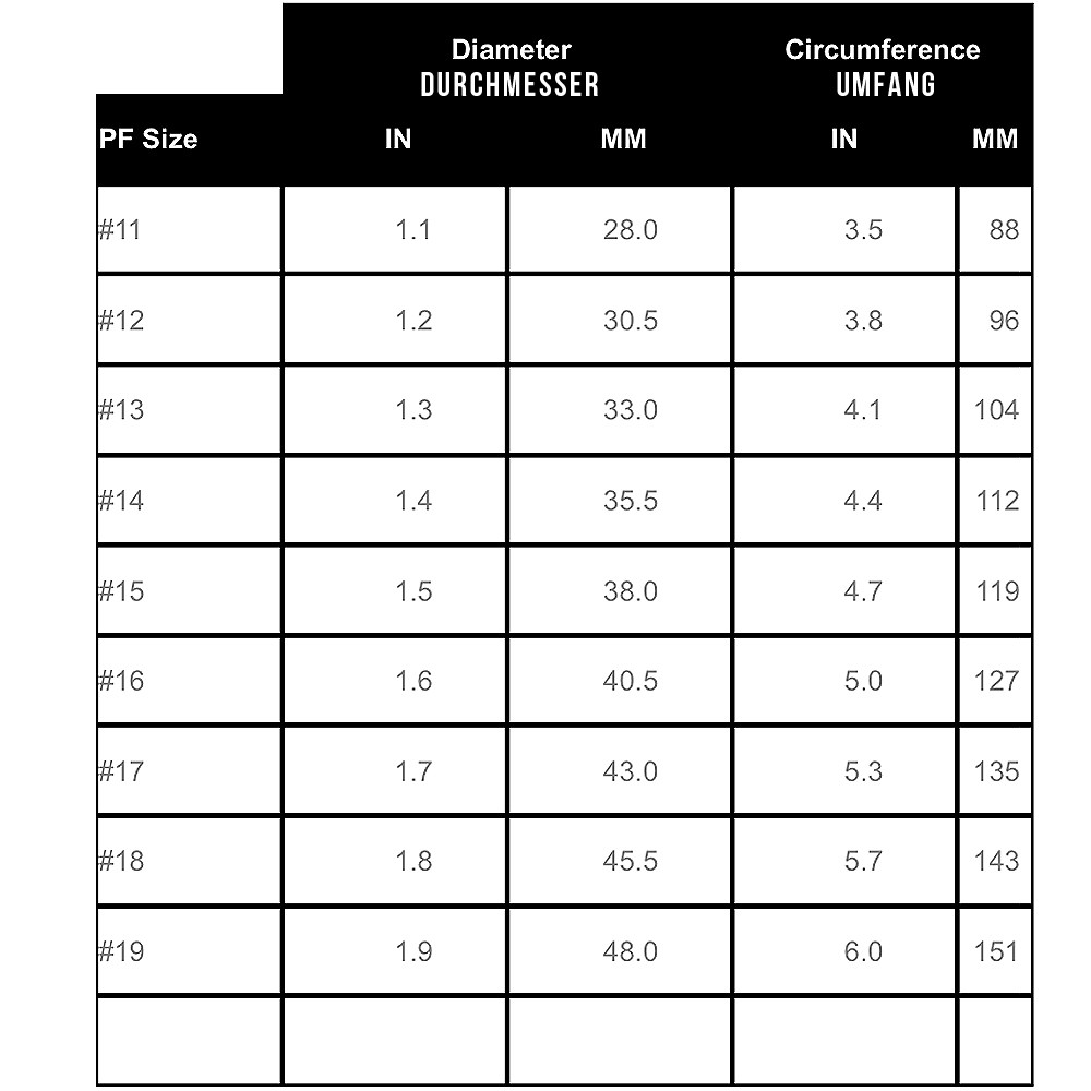 - Keine Verwechslungen möglich, da jeweilige Größe auf dem Ring angegeben