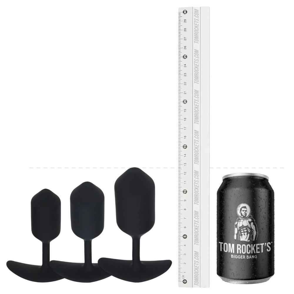 Mit drei unterschiedlich großen Plugs aus samtweichem Silikon kannst du dich langsam, aber sicher steigern. Jeder Plug hat einen integrierten Metallkern, der für ein extra intensives Gefühl von Fülle sorgt: perfekt für alle, die den Reiz des Gewichts spüren wollen.