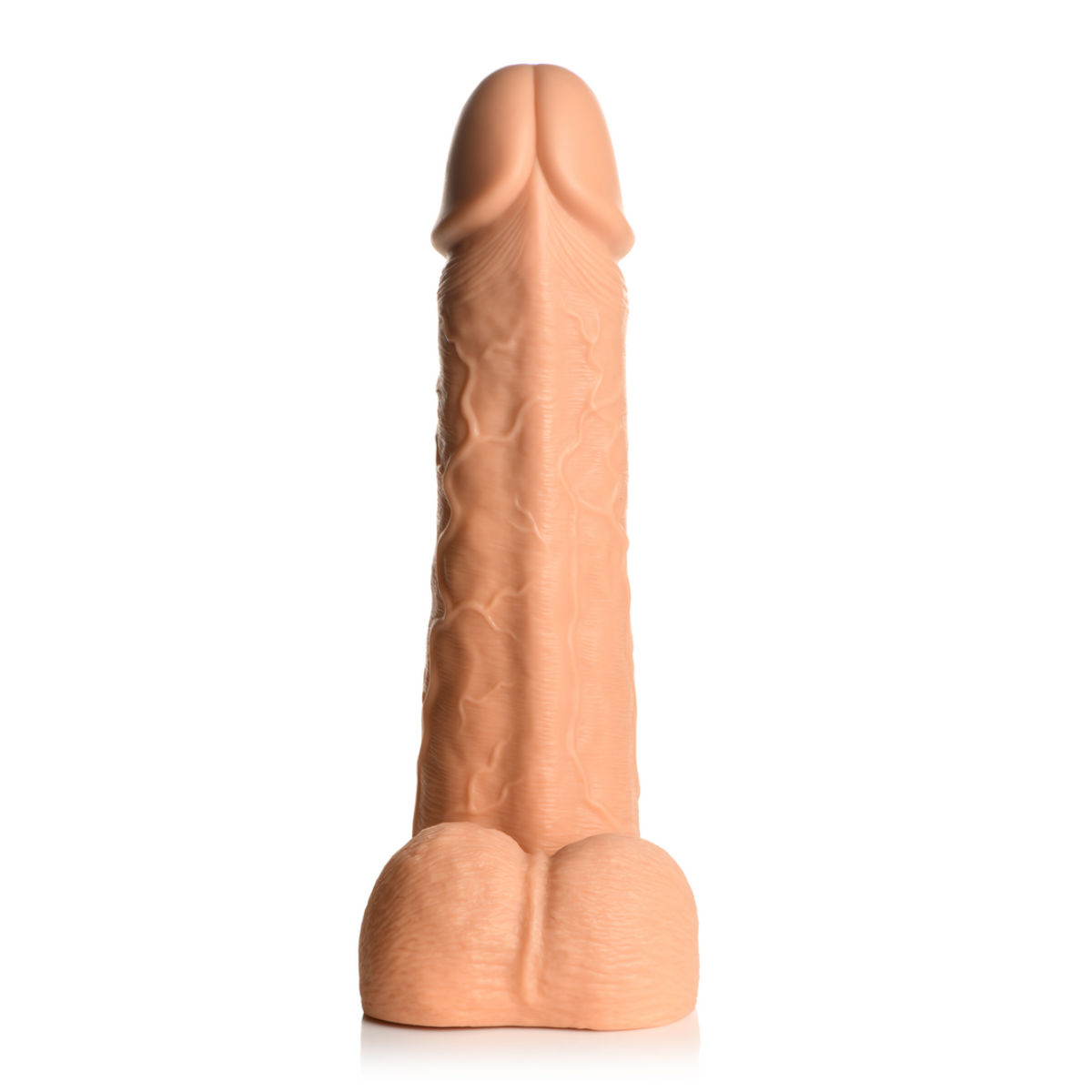 Sowohl die erfahrensten Fister, als auch die ehrgeizigsten Power-Bottoms, werden vor diesem Riesenteil mit ganzen 50 cm Einführlänge und 16 cm Durchmesser kapitulieren.. Dieses 10 kg schwere Monstrum bietet sich wunderbar als Prunkstück bei Deiner nächsten Gartenparty oder als Eye-Catcher im Wohnzimmer an! Natürlich kannst Du auch versuchen diesen Riesen tief in Dich einzuführen, jedoch solltest Du vorher die Nummer des Guinessbuchs der Weltrekorde, sowie die Deines Arzt des Vertrauens auf Kurzwahl haben.