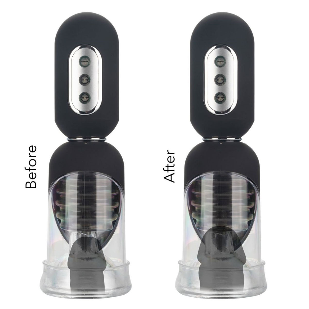 Der Pump-Sucker ist spielend leicht zu bedienen durch ein simples 3-Knopf-System. Mit dem oberen Knopf bedienst du die Vibrationsfunktion, während der untere Knopf für die Saugfunktion der Pumpe zuständig ist. Mit dem mittleren Knopf kannst du den Druck schnell wieder ablassen. Die Pumpe hat gleich 2 weiche Hüllen dabei in verschiedenen Größen, die du ganz einfach nach Lust, Laune und Bedarf austauschen kannst!
