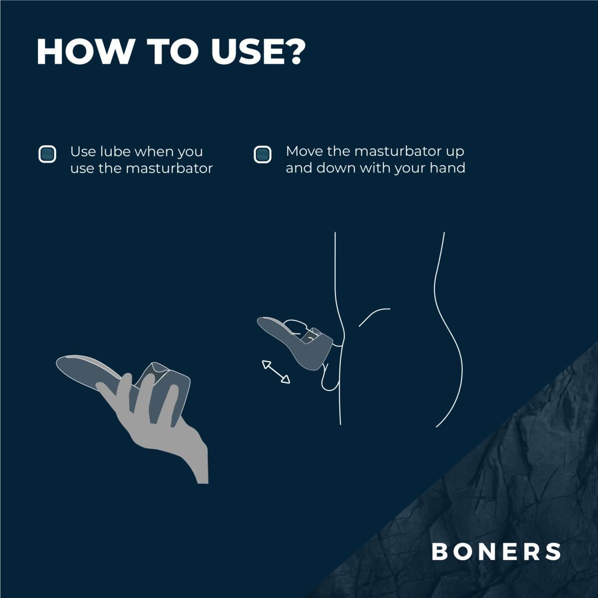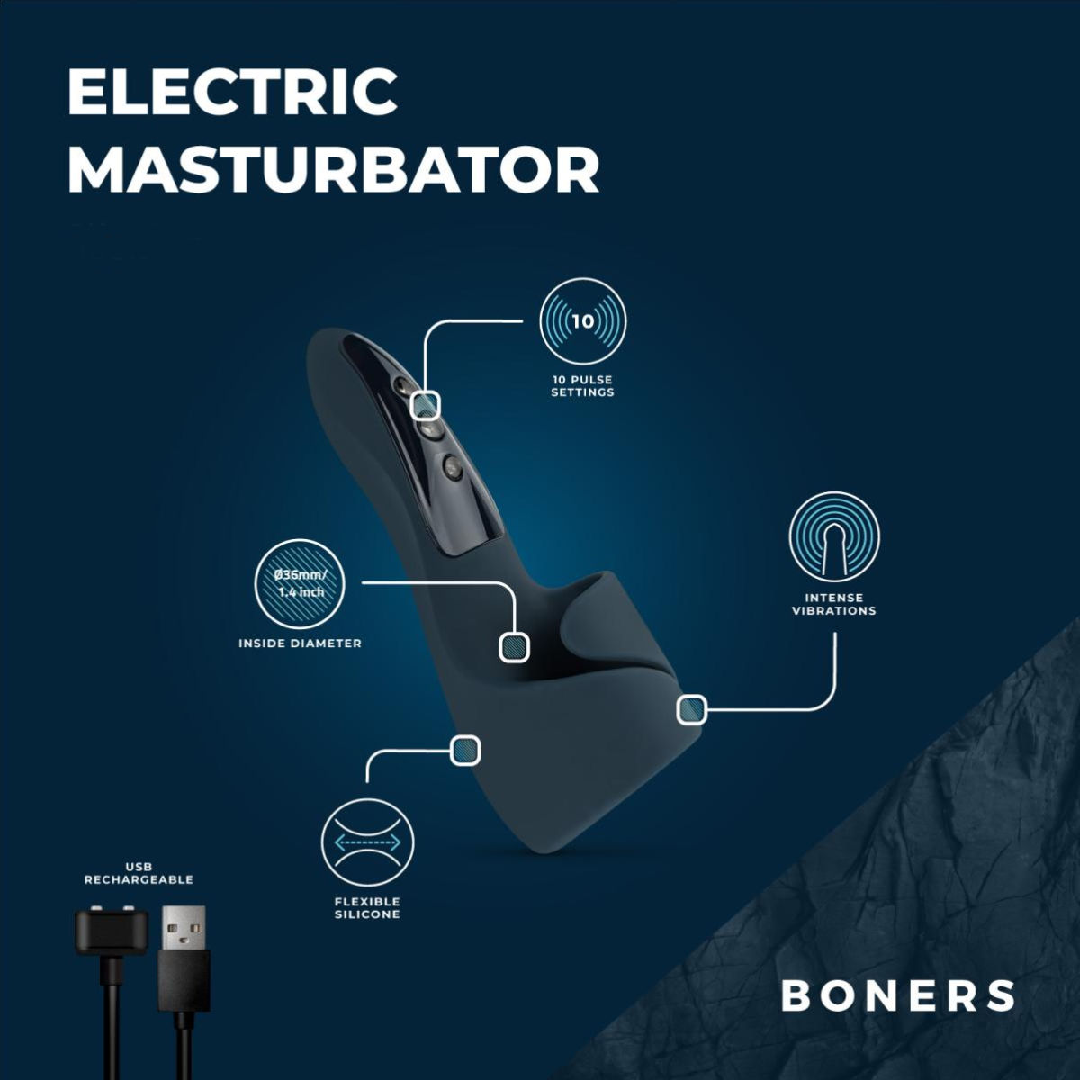 Genieße mit dem vibrierenden Handjob-Simulator von Boners das Gefühl eines richtig geilen Handjobs! Der leistungsstarke Motor hat zehn verschiedene Vibrationseinstellungen, die sich ganz einfach mit den Tasten einstellen lassen.